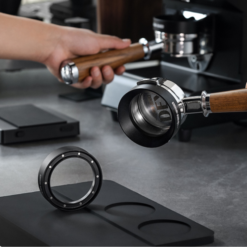 • Осигурява прецизност на дозата, гарантирайки, че точното количество кафе се насочва в ръкохватката.