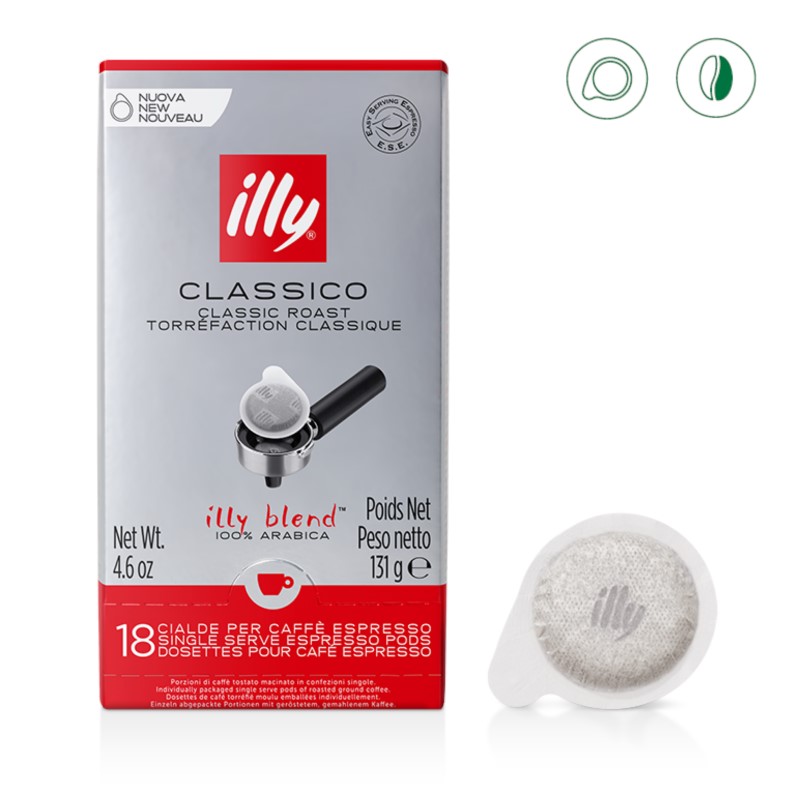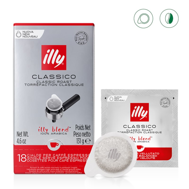 Биоразградимите E.S.E illy Espresso дози Classico са в опаковка от 18 броя.